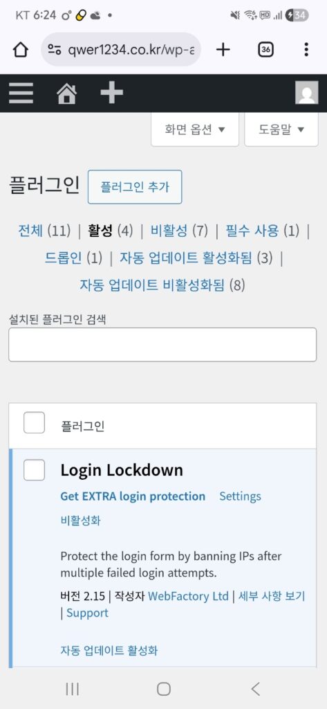 • [ ] 플러그인 자동 업데이트 전부 꺼짐